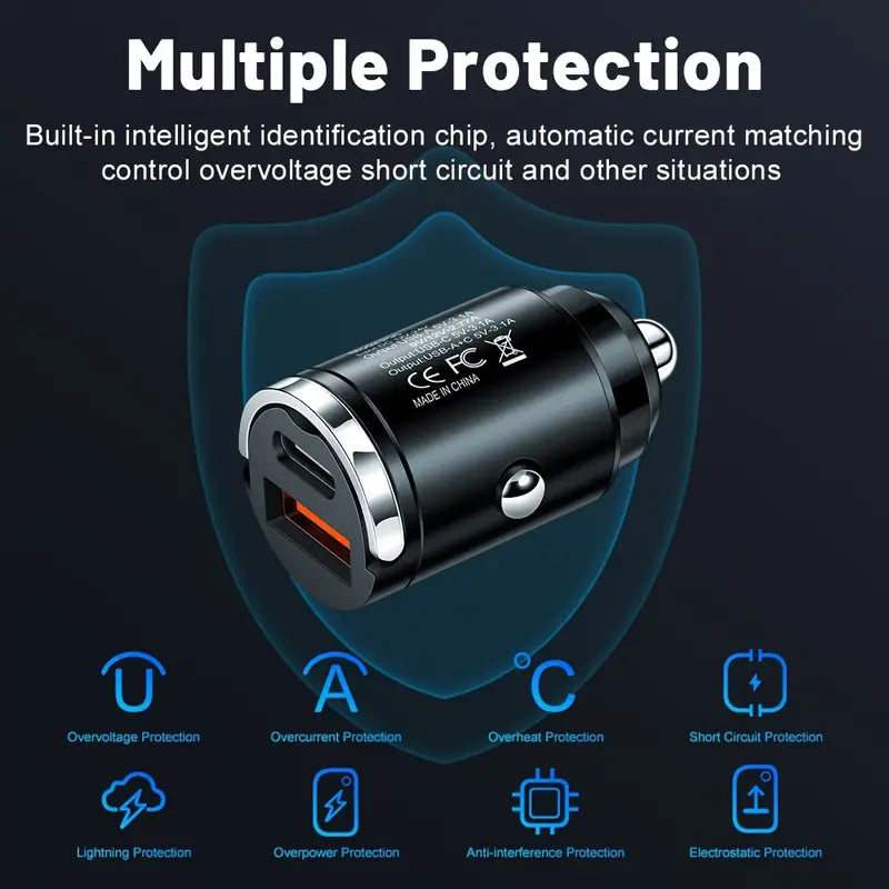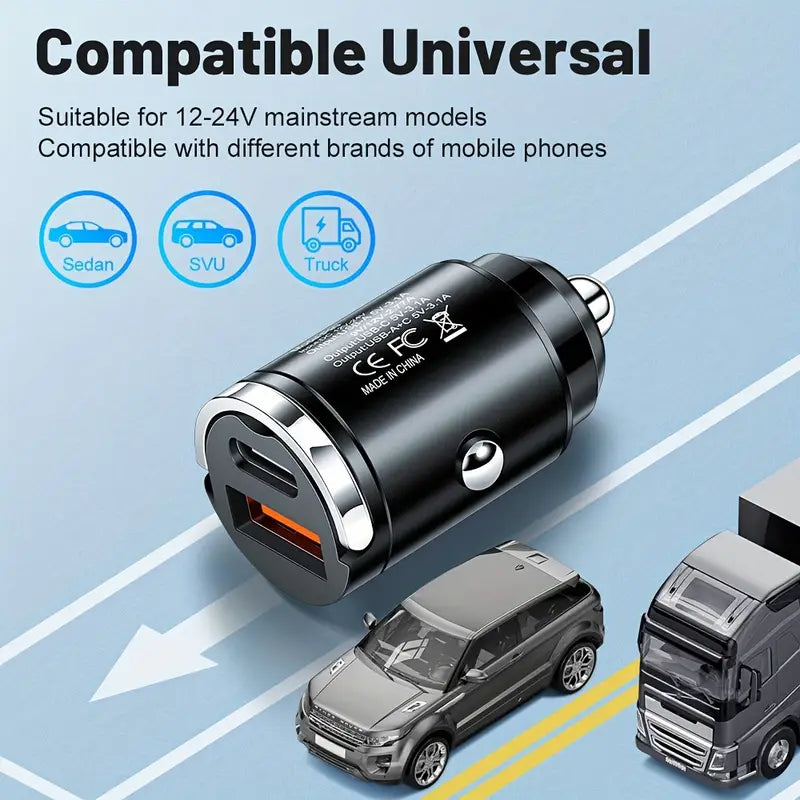 USB-C / USB-A 2-in-1 Car Phone Charger | Type-C Fast Charger